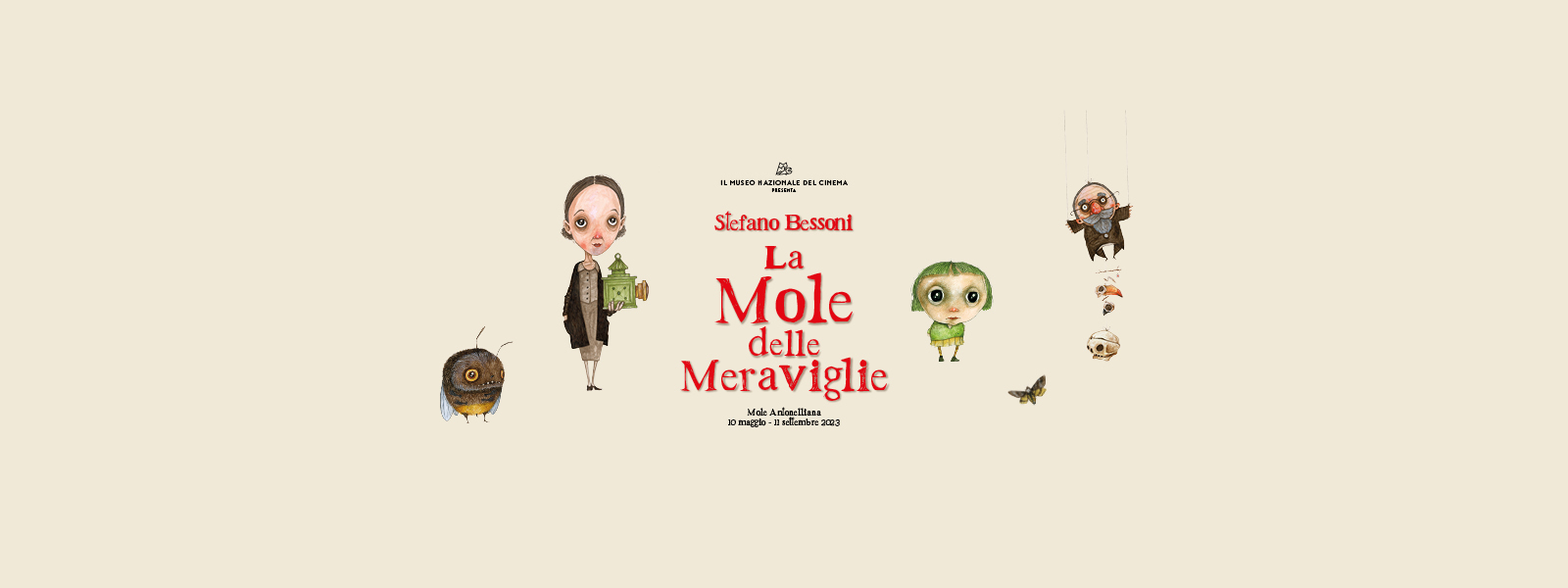 The National Museum of Cinema presents Stefano Bessoni. La Mole delle Meraviglie (the Mole of wonders), curated by Stefano Bessoni and Domenico De Gaetano, the first major exhibition dedicated to the creative genius of the director, illustrator and animator, on display from 10 May to 11 September 2023 on the Mole Antonelliana's ground floor, with free admission during museum opening hours.