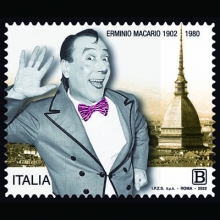 Presentato al Museo Nazionale del Cinema lo speciale francobollo emesso dal Ministero dello Sviluppo Economico in memoria del grandissimo Erminio Macario, in occasione del centoventesimo anniversario dalla nascita. Una raffinata opera filatelica che celebra l’unicità di un personaggio piemontese che ha scritto la storia dello spettacolo italiano.